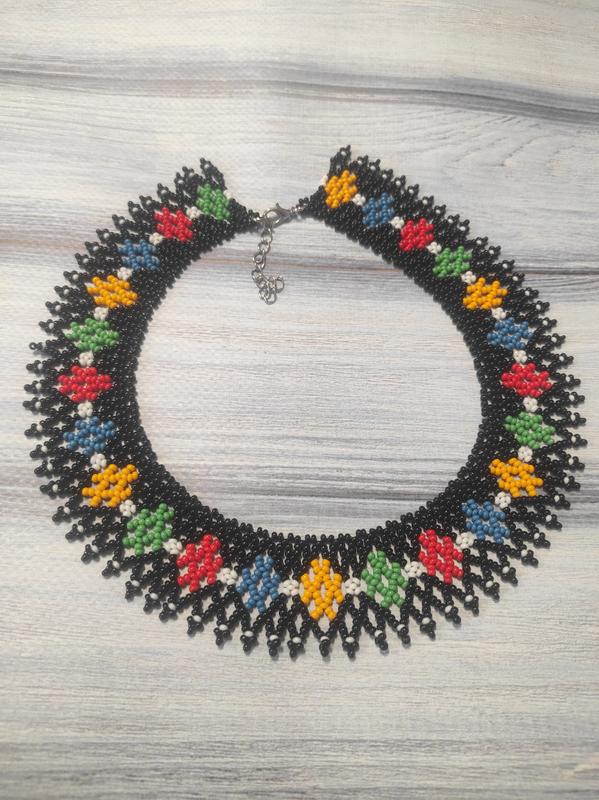 Виготовлена з чешського бісеру, ширина 3см, довжина 38см+5см ланцюжок