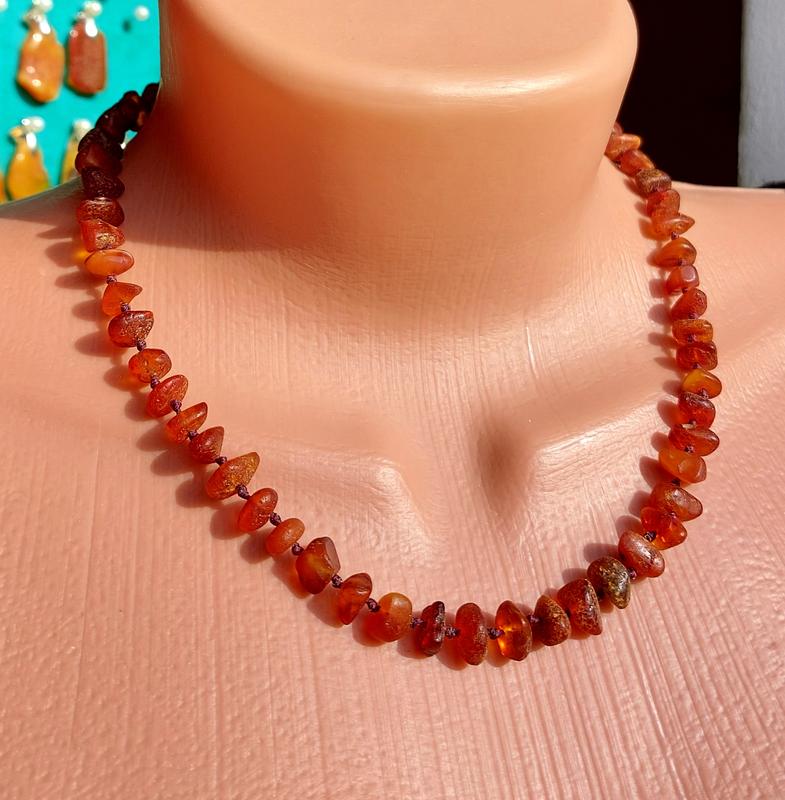 Намиста виготовлені із натурального необробленого бурштину красивих темних відтінків. Невеликі янтарні намистини, красиво зібрані в намисто на міцній вощеній нитці через вузлики, виглядають дуже вишукано. Таке намисто чудово підійде для повсякденного носіння з лікувальною метою тим людям, які не люблять носити об'ємних прикрас. Його можна носити під будь-який одяг. Також на янтарне намисто ви можете почепити свій улюблений аксесуар: кулончик, хрестик, тощо. Бурштинове намисто сприятливо впливає на стан всього організму: активізує імунну систему, регулює тиск, знімає головний біль та втому. Також бурштин сприяє зціленню при захворюваннях серцево-судинної та ендокринної системи, і особливо щитовидної залози. Довжина намист: 45 см Вага: 11-13 гр Розмір намистин біля 7-8 мм Застібка пластикова гвинтова. Є в наявності подібні намиста інших відтінків. Ви також можете замовити бажану довжину намиста. Намисто янтарь бурштин буси, буси з янтаря, янтарное ожерелье, намисто з бурштину, янтарные бусы, янтарь необработанный, необроблений бурштин, коралі, лікувальне намисто, лечебный янтарь, нешлифованного янтаря, медовый янтарь, жёлтый янтарь, янтарные бусины, темный янтарь, янтарное колье