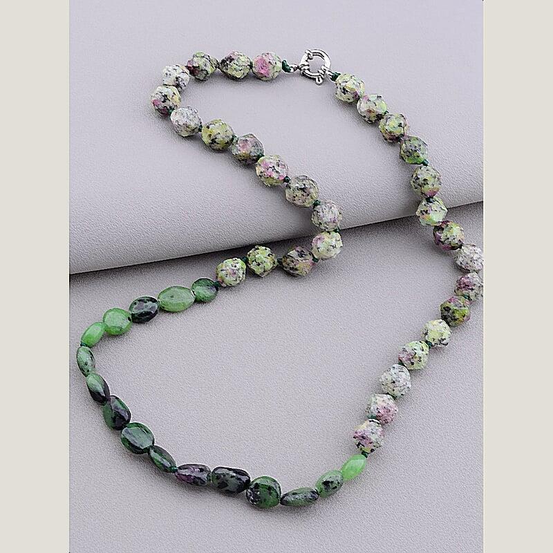 Артикул: 076296 Размер звена Бренд: SUNSTONES Вес: 45,78 г. Диаметр: 9 мм. Длина: 52 см. Камень: Цоизит(нат.) Качество: Хорошее Тип замочка: Карабин Цвет: Зеленый Цвет2: Бордовый Цвет3: Серебряный