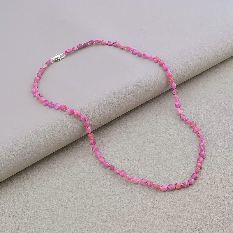 Артикул: 090357 Размер камня: 5х5 мм. Бренд: SUNSTONES Тип замочка: Карабин Длина: 45 см. Материал: Сталь Качество: Хорошее Камень: Турмалин(нат.) Цвет: Розовый Цвет3: Серебряный Форма товара1: Грань Вес: 10,76 г.