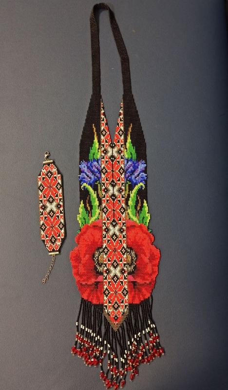 Гердан "Маковое поле орнамент" изготовлено из чешского бисера