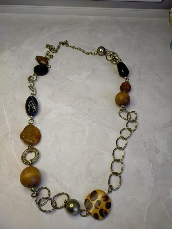 Длинное колье. Длина-122. Дерево, пластик, метал