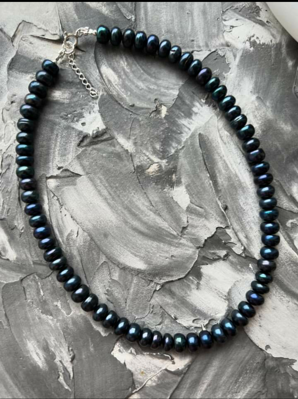 Жемчуг натуральный темный, застежка серебро с удлинителем, длина чокера 40 см.