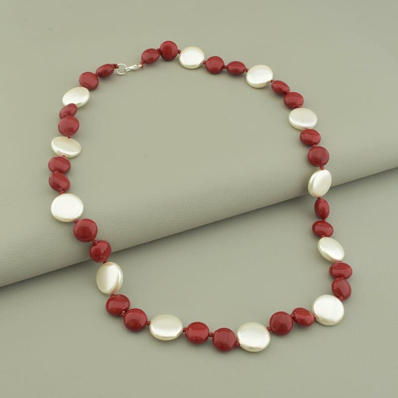 Артикул: 122282 Размер камня: 15х15 мм. Бренд: SUNSTONES Тип замочка: Карабин Длина: 52 см. Материал: Сталь Качество: Хорошее Камень: Майорка(нат.) Цвет: Белый Цвет2: Красный Цвет3: Серебряный Вес: 45,6 г.