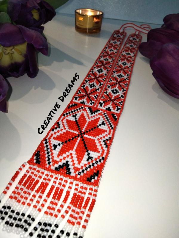 Украинский гердан ручной работы выполнен из качественного чешского бисера. Длина 45 см, ширина 5 см. За деталями включите сообщение, с радостью ответьте