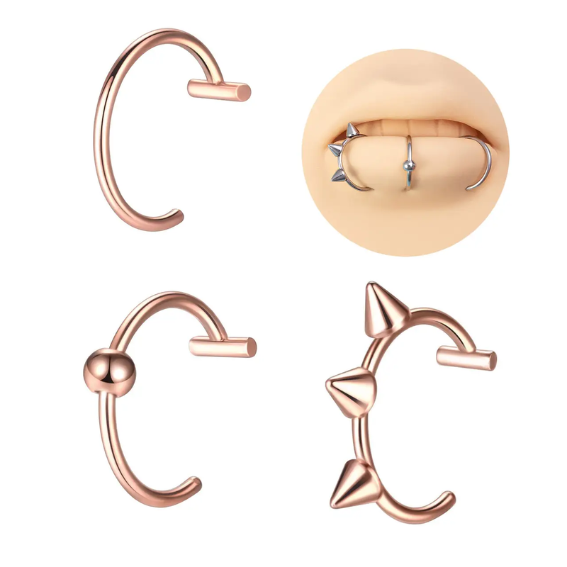 Набор 3в1. каффа на губу. пирсинг муляж, кольцо обманка розовое