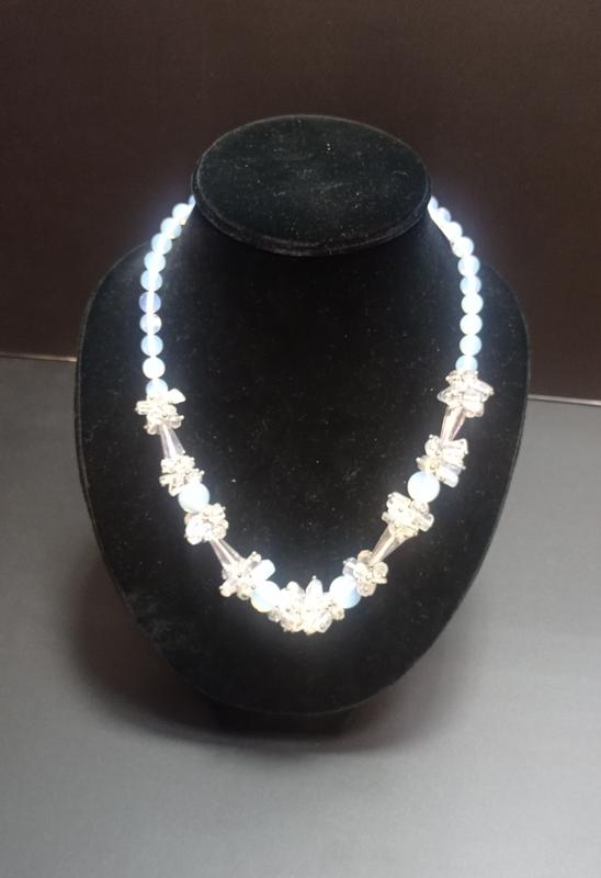 Нарядне намисто з місячного каміння. Місячний камінь зміцнює інтуїцію, сприяє натхненню, успіху та удачі в коханні та ділових справах. камінь допомагає травній системі, засвоює поживні речовини, усуває токсини та затримку рідини та полегшує дегенеративні стани шкіри, волосся, очей та м’ясистих органів, таких як печінка та підшлункова залоза. 50 см.