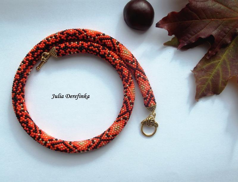 Яркий оранжевый жгутик. Цвета спелого тыковку :) очень подходит на Хэллоуин. Но и тем, может дополнить Ваш яркий образ в любой день. Жгутик не толстый, всего 1,1 см, связан из японского бисера Тохо 11, фурнитура под античное золото. На заказ могу доделать браслет или серьги. Длина 47,5 см, ширина 1,1 см. Вес прибл. 50 г