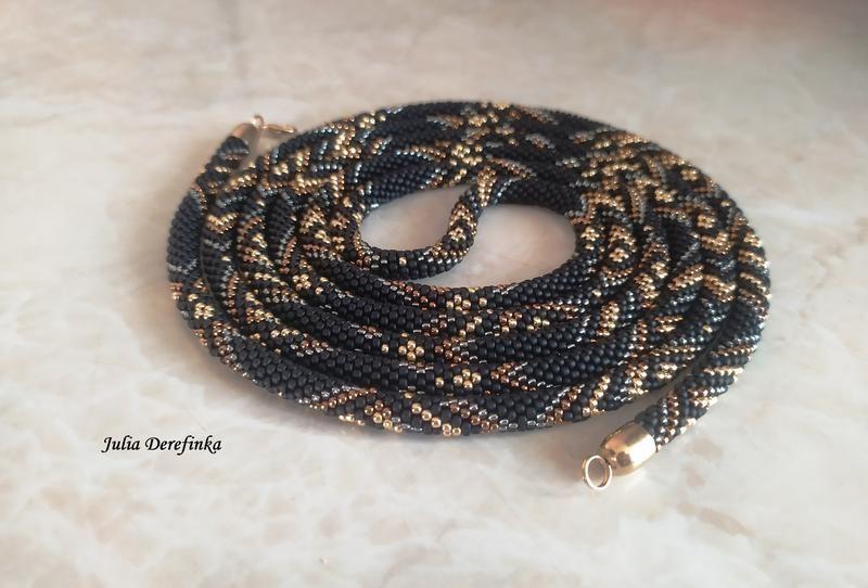 Длинный лариат с геометрическим рисунком на черном матовом. Связан из японского бисера, латунная фурнитура. Длина под заказ, лариат на фото должно 185 см. Красивая, нарядная украшение, множество вариантов как и с чем носить. Подойдет как к темному, так и светлому одежды. Латунная фурнитура не темнеет от влажности и времени. В наличии нет, сделаю на заказ. Товар под заказ