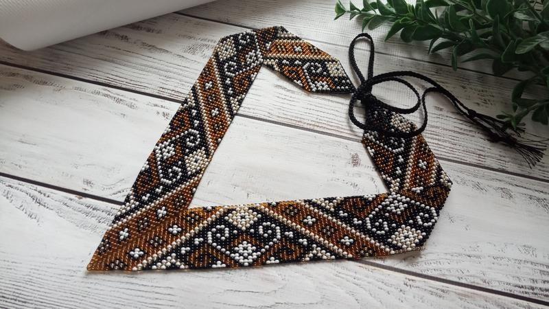 Загальна внутрішня довжина -44см. Зав"язки по -30см, ними зручно регулювати довжину. Чеський бісер, міцна нитка. Товар виготовляється на замовлення.
