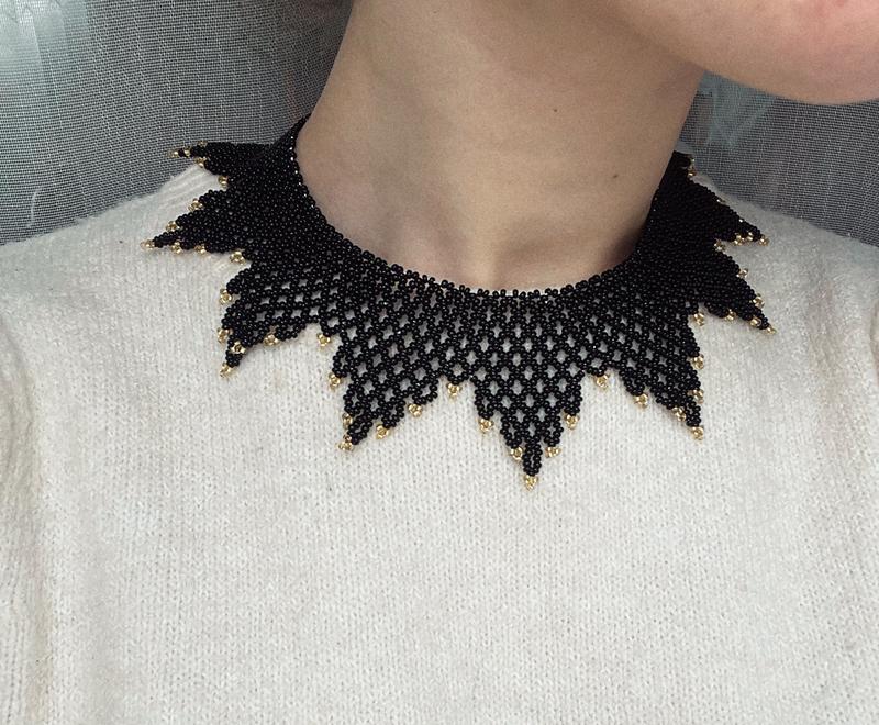 Силка из бисера, выполненная из чешского черного и золотого бисера. Ручная работа, возможно заказ в других цветах