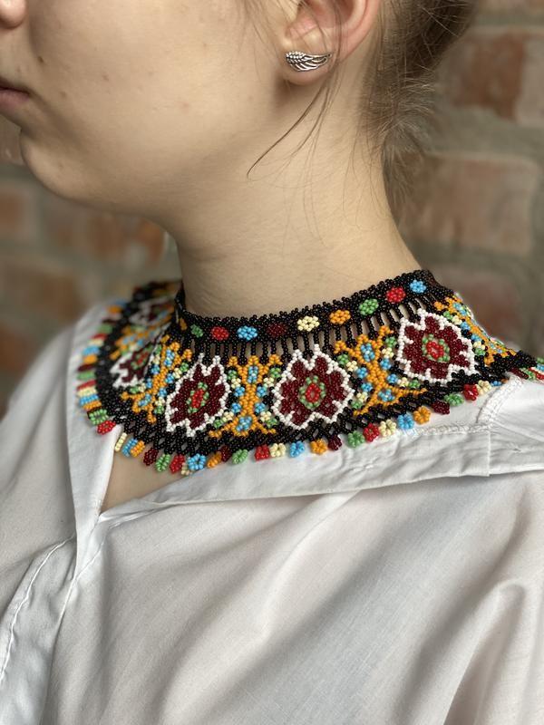 Українська традиційна прикраса - силянка. На роботу використано: чеський бісер Preciosa, міцна нитка, карабін. Довжина 40см(можна більше), ширина 7,5 см. Додатково додається 3 кільця для збільшення довжини виробу. Також в нашому магазині є інші варіанти силянок. Товар виготовляється на замовлення(до 7 днів, уточнюйте у продавця, адже товар може бути в наявності)