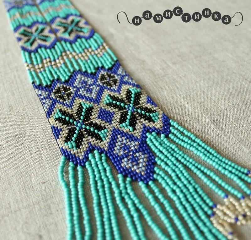 Украшение, выполнена чешским бисером и прочной нитью. Длина 55 см, ширина 6,5 см Товар под заказ