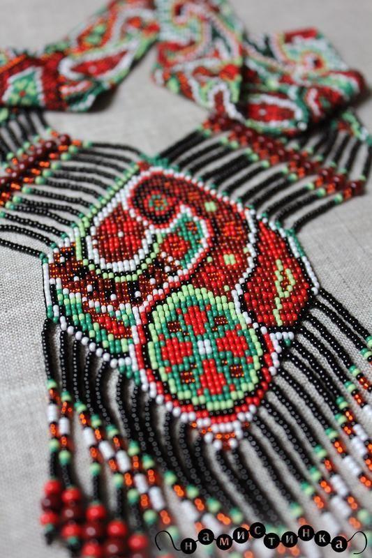 Украшение, выполнена чешским бисером и прочной нитью. Длина 52,5 см, ширина медальона 7,8 см. Товар под заказ