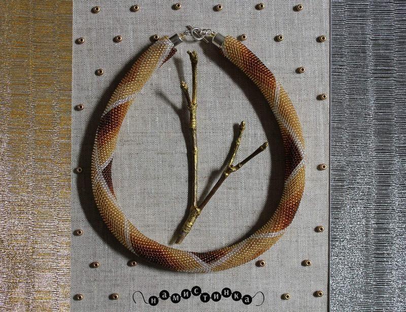 Прикраса, виконана чеським бісером та міцною ниткою. Довжина 43 см, ширина 1,7 см