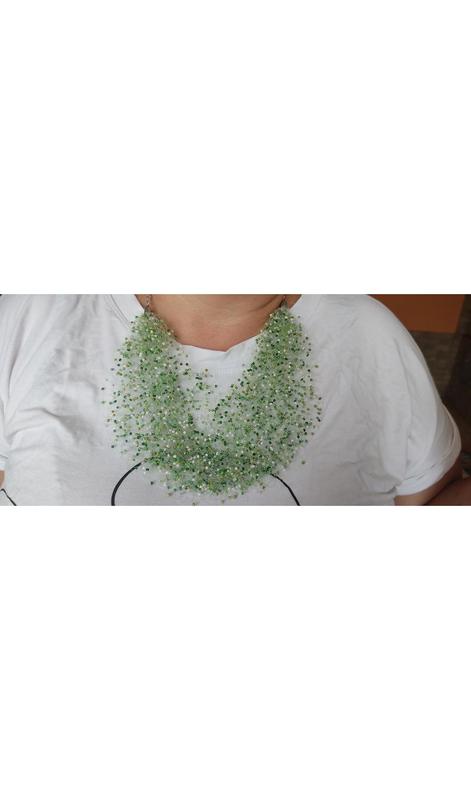 Виробник: Власне виробництво Повітряне кольє виконане з міксу зелених кольорів,дуже пишне і легке(52 низки) ,також ланцюжок для регуляції потрібної довжини. Оплата:наложкою або на карту Відправка:укр або нова пошта. Для придбання звертайтесь в повідомлення або за вказаним номером. Можливе виготовлення на замовлення в потрібних кольорах ,пишності і довжини.