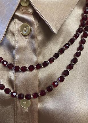 Бусы похожи на гранатовые ,думаю,что не натуральные Состояние в целом идеальное,за исключением редких мелких незаметных сколов