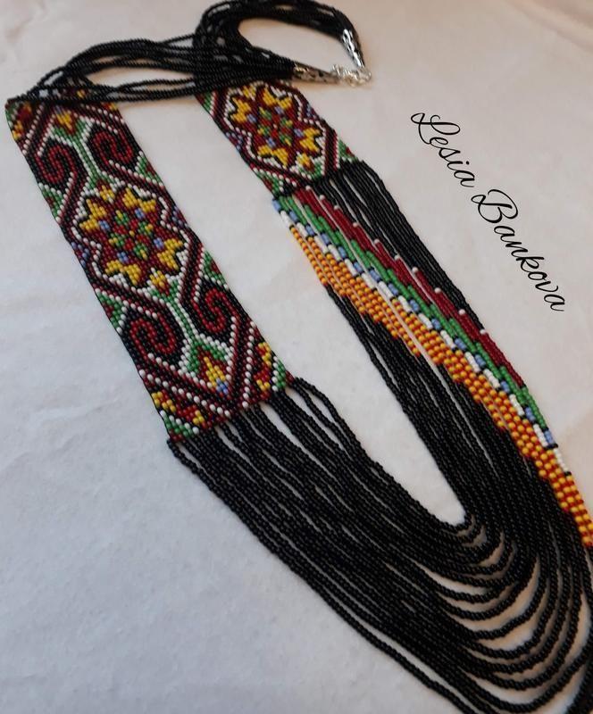 Работа изготовлена из чешского бисера на прочной. Ширина плетеной части 4см. Длина примерно 45см. Есть удлинение цепочкой. Товар под заказ