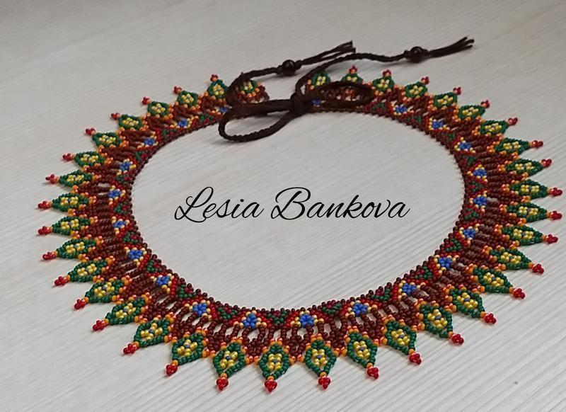 Работа изготовлена из чешского бисера на прочной нити. По вашему желанию могу изменить цвет. Длина примерно 36см +удлинение завязкой, но могу сделать нужный вам размер.Ширина 3см. Товар под заказ