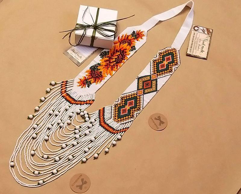 Работа изготовлена из чешского бисера на прочной нити. Ширина плетеной части 5.5 см Товар под заказ