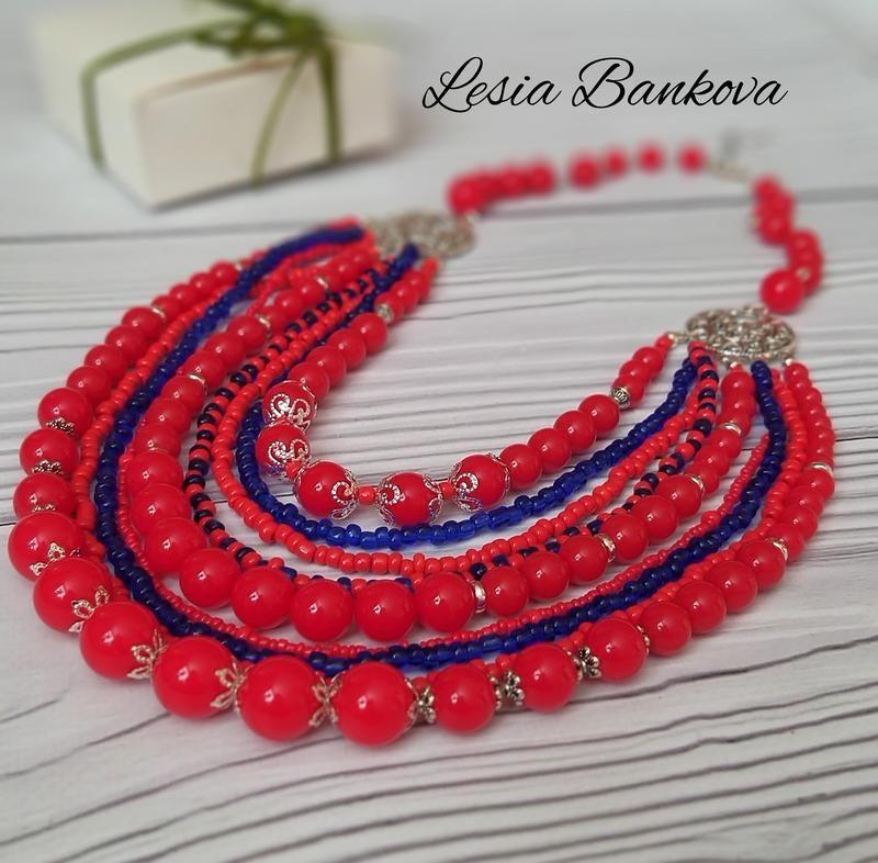 Робота виготовлена з якісних акрилових намистин. Фурнітура під срібло. Якщо виникли запитання напишіть мені у повідомленні. Дополнительные характеристики: Цвет : Красный Цвет : Синий Материал : Бусины
