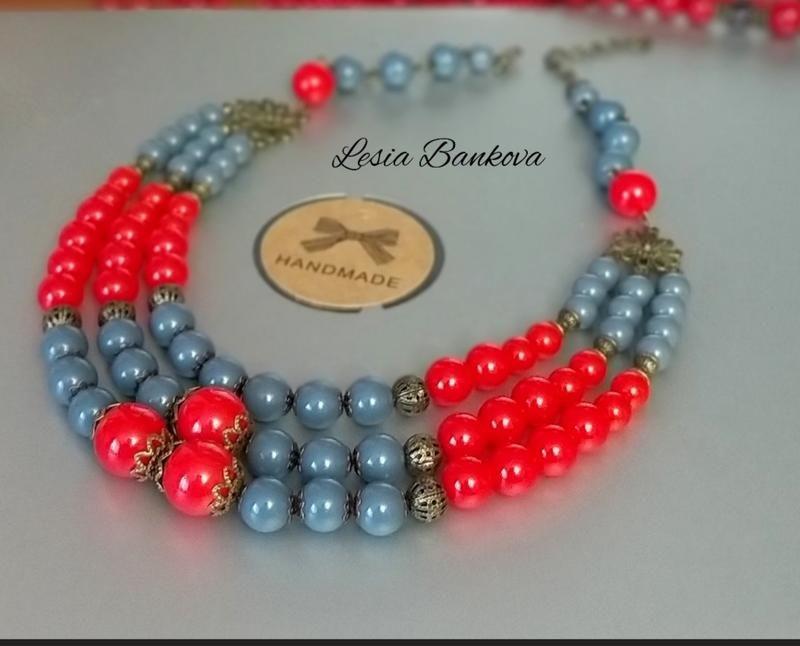 Робота виготовлена з якісних китайських намистин .Довжина приблизно 35см плюс подовження ланцюжком. Фурнітура може змінюватися в зв'язку з її наявності. Якщо у вас є запитання просто напишіть мені. Дополнительные характеристики: Цвет : Красный Цвет : Серый Материал : Бусины Товар под заказ
