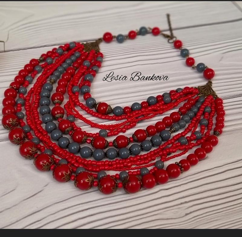 Робота виготовлена з якісних китайських намистин .Довжина приблизно 35см плюс подовження ланцюжком. Фурнітура може змінюватися в зв'язку з її наявності. Якщо у вас є запитання просто напишіть мені. Дополнительные характеристики: Цвет : Красный Цвет : Серый Материал : Бисер Материал : Бусины Товар под заказ