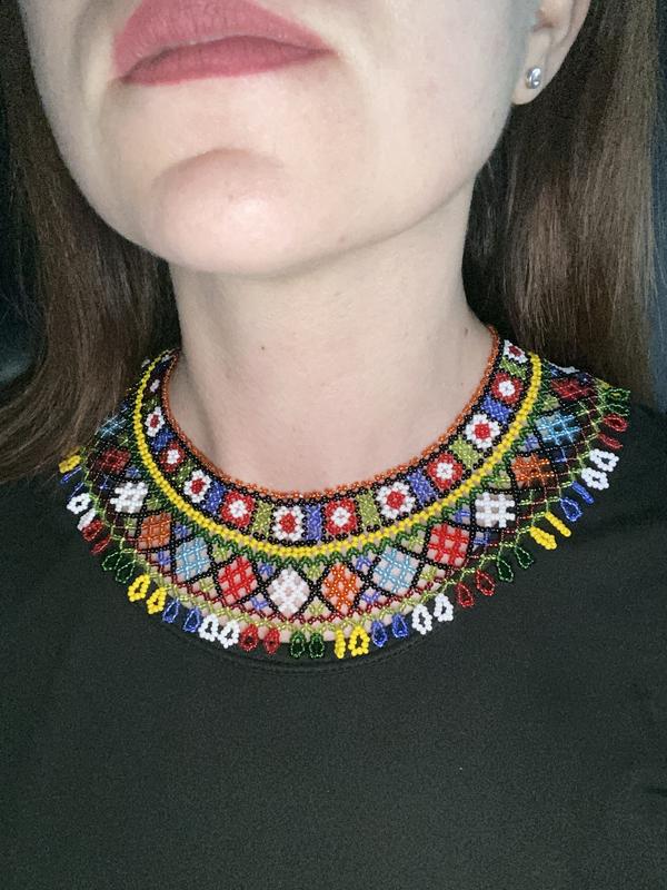 Кольорова яскрава силянка. Довжина виробу 38 см, зав’язки по 21 см. Ширина 6 см. Схема Люсі Іванцу. В наявності.