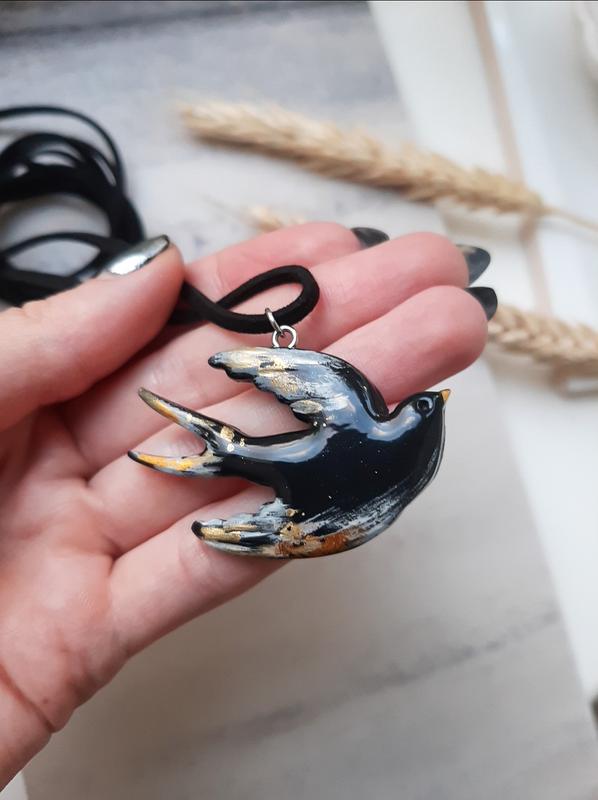 Весняна підвіска на шию "Ластівка" - неймовірна прикраса ручної роботи, сповнена сенсом! Ластівка - це "чиста пташка", якій притаманна жіноча символіка - відродження, добра та щастя💚 Колір можна змінювати за бажанням замовника Також можна створити намисто з пташкою, брошку ✅ ▪︎Матеріал: професійна полімерна глина бельгійського виробника ГАРАНТУЮ ЯКІСТЬ - прикраса не розбивається та не ламається при падінні💯 ▪︎Фурнітура: МЕДИЧНА СТАЛЬ (не викликає алергію, не темніє) ▪︎ЗАМШЕВІ та БАВОВНЯНІ шнурівки є різних кольорів, як і пташки ☺ До кожної прикраси входить чарівне пакування зі сухоцвітами та листівкою