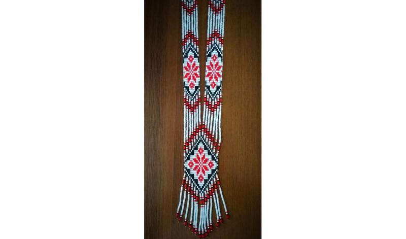 Гердан изготовлен из чешского бисера первого сорта в технике станочного плетения. По мотивам украинской вышивки. Может быть отличным дополнением к вашему повседневному или праздничному образу Длина изделия 50 см, ширина нижнего кулону 4,5 см.. По желанию покупателя можно изменить цвет и длину изделия
