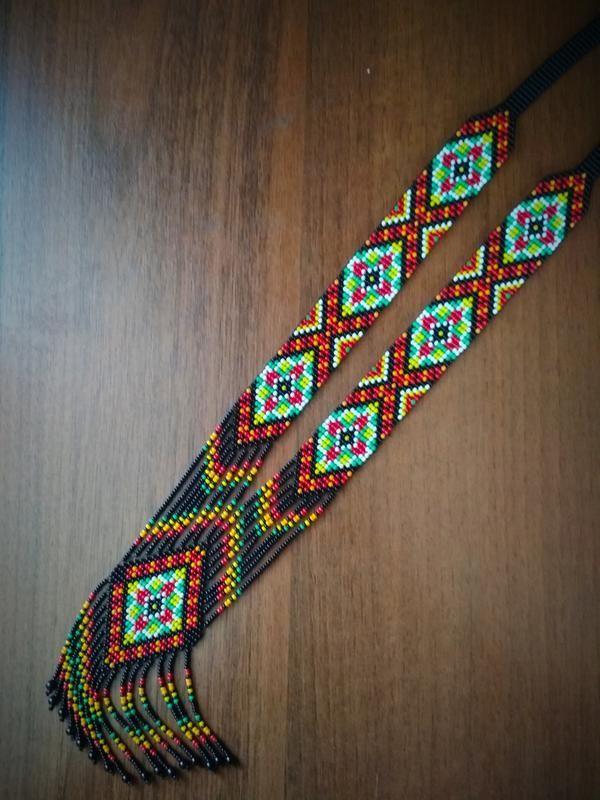 Гуцульский гердан из чешского бисера первого сорта изготовлен в технике станочного плетения. Длина 50 см. По желанию покупателя можно изменить цвет и длину изделия Срок исполнения 2-3 рабочих дня