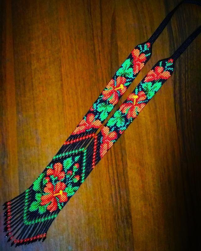Гердан изготовлен из чешского бисера первого сорта в технике станочного плетения. Длина изделия 55 см ширина нижнего кулону 6 см. По желанию покупателя можно изменить цвет и длину изделия
