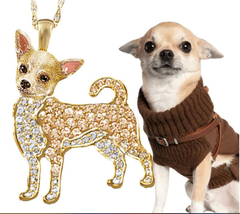 Цепочка кулон подвеска собака пипильон чихуахуа металл- золотистый камни