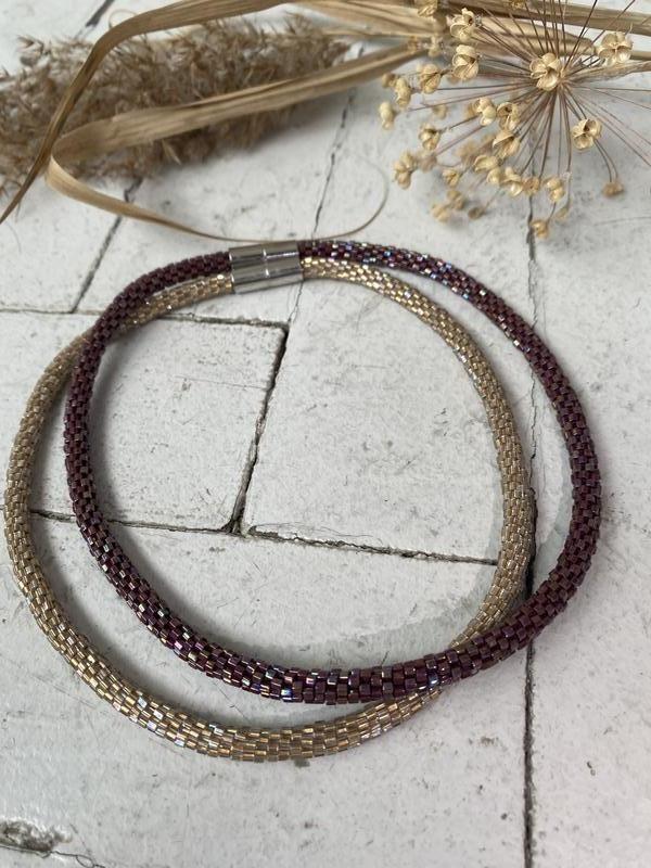 Модель: Opague-Rainbow Oxblood Яркий и стильный жгут на шею, под любой стиль и внешность, сделан из качественного японского бисера, имеет магнитную застёжку из нержавеющей стали. Плетется крючком, что даёт возможность жгуту иметь тонкий круглый вид и прочность. Длина изделия - 40см Под заказ возможен любой цвет, дополнительно кольцо такого же цвета, браслет и сережки (гвоздики - основа серебро 925 пробы, колечки из нержавеющей стали) Подарочная упаковка и скидка на следующий заказ! Дополнительные характеристики: Цвет : Фиолетовый Материал : Бисер