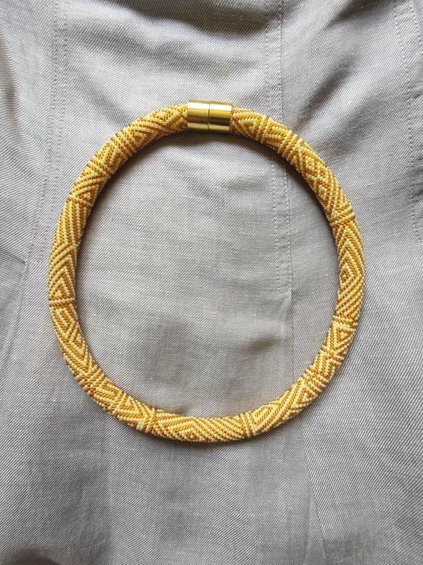 Жгут 55 см в длину, 1,5 см в ширину. Выполнен из чешского бисера, 2 цвета. Качественная магнитная застежка. Собственная ручная работа. Очень интересное, яркое украшение. Доставка за счет покупателя