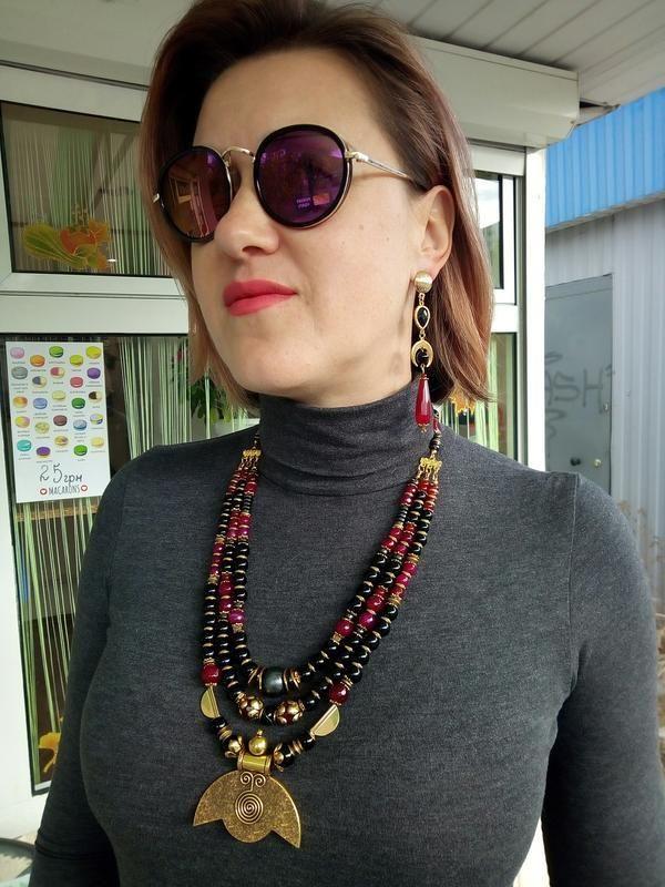 Это необычное, шикарное колье притягивает и манит... Агат, обсидиан, нефрит, латунная фурнитура. Оно создано специально для вас, в нем вы будете неотразимы! Дополнительные характеристики: Камни / вставки : Черный агат Материал : Бусины Материал : Золото