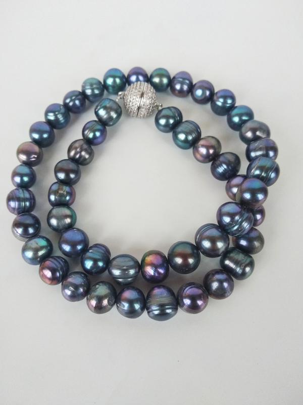 Бусы женские из черного жемчуга на магнитной застежке. Описание: Натуральный, культивированный жемчуг, цвет черный (Таиланд). Диаметр бусин 6мм-8мм на ювелирном тросике. Фурнитура премиум класса : ювелирный сплав серебра, цирконий. Длина изделия 44,5см ( ручная работа ).