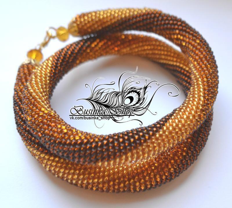 Ефектний джгут з трьох відтінків коричневого бісеру-вогника. Стильно виглядає на шиї і яскраво виблискує на світлі