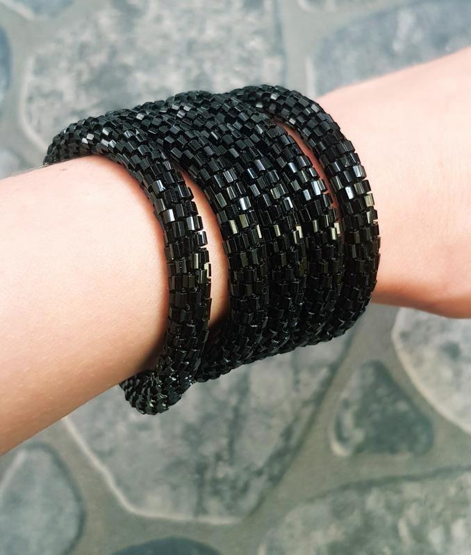 Короткий лариат из японского рубленого бисера Matsuno. Можно носить как длинный жгут, как чокер в 2 оборота, возможно, кому-то подойдет в качестве браслета. В комплект идет кулон-подвеска из черного агата, обшитая бисером и хрустальными бусинами. Длина лариата 66 см, размер подвески 2,5*1,8 см