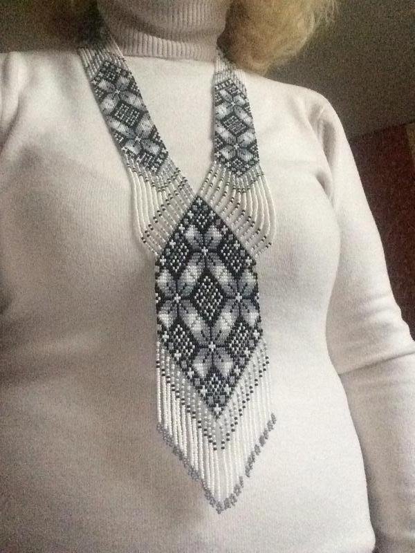 Оригинальный гердан изготовлен из чешского бисера на прочной нити. Длина изделия 55см, ширина нижней части 7см. Товар под заказ