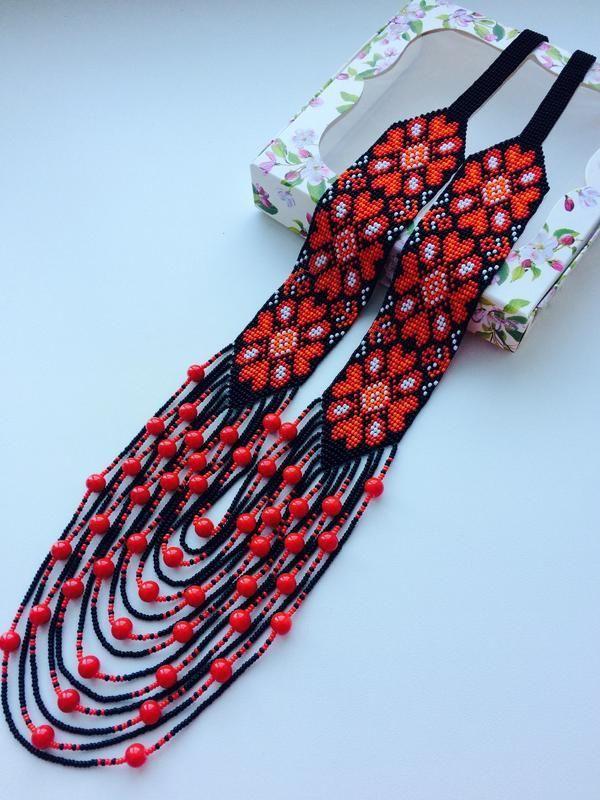 Оригинальный гердан изготовлен из качественного чешского бисера и крепкой нитки. Длина изделия сложенного пополам 49см, ширина полосок 4см. Товар под заказ