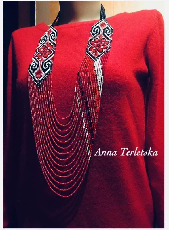 Оригинальный гердан, выполненный из чешского бисера и прочной нити. Длина изделия сложенного пополам 50 см, ширина полосок 4,5 см. Товар изготавливается по заказу