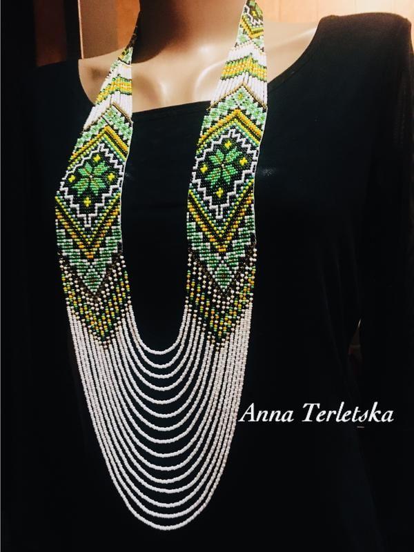 Красивый гердан, выполненный из чешского бисера и прочной нити. Длина изделия сложенного пополам 52 см, ширина полосок 4,5 см. Товар изготавливается по заказу