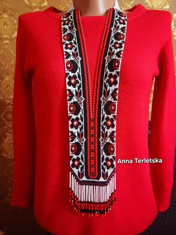 Красивый гердан, выполненный из чешского бисера и прочной нити. Длина изделия 56 см, ширина нижней части 8,3 см. На заказ 5 дней.