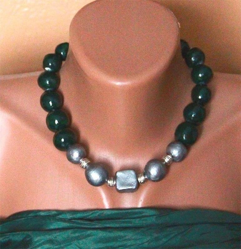 Ожерелье, изготовленное из глины и металлических вставок, длина 44 см. Экологически чистый материал.