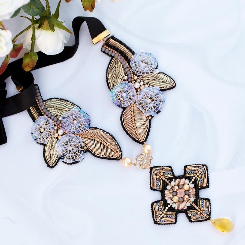 Шикарное ожерелье ждет свою обладательницу. Длина регулируется с помощью завязок сзади. колье массивное и смотрится очень эффектно. Подойдёт для праздничного мероприятия или для вечерней прогулки. Дополнительные характеристики: Камни / вставки : Жемчуг Камни / вставки : Стразы Материал : Бисер Материал : Бусины Материал : Стеклярус