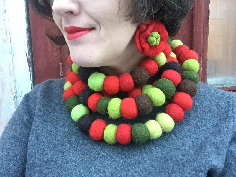 шарфобус з натуральной овечьей шерсти. Легкий, яркий и тепленький. Украсит блузу, свитер и пальтишко. 2-3-4 оборота вокруг шеи. Серьги можно заказать отдельно. Товар под заказ