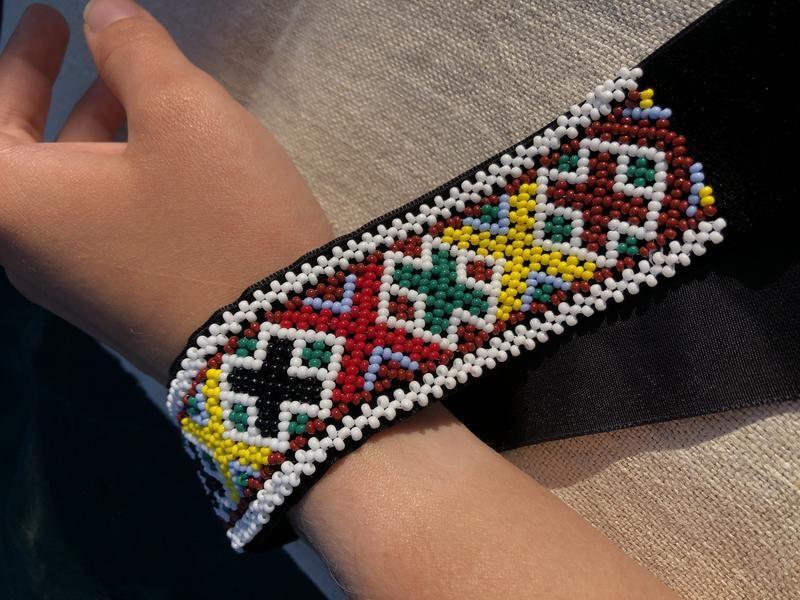 Ленточный гердан-воспроизведение. В НАЛИЧИИ Из книги Елены Федорчук І пол. ХХ ст. Городенковский район, Ивано-Франковская область. Ширина – 4 см. Длина бисерного полотна – 22,5 см. Длина ленты – 1 м. Техника: нанизывание сеточкой + крестик (окружная цепочка) 8 час. ручной работы ⠀ *последнее фото оригинал украшения из книги👉