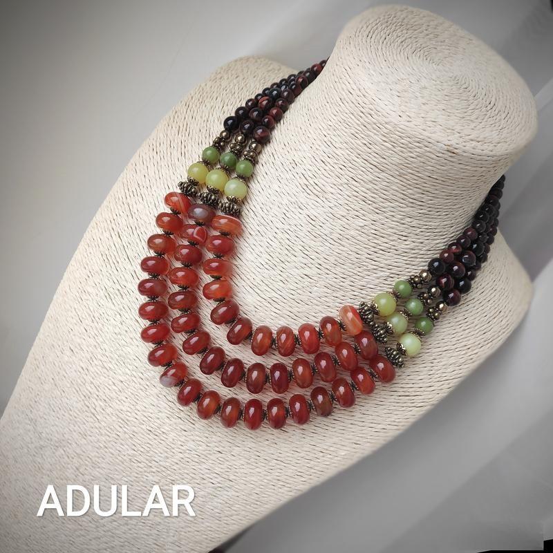 Агат, жадеїт та биче око. Фурнітура бронзового кольору Додаткові характеристики: Колір: Зелений Колір: Коричневий Камені / вставки: Агат Матеріал: Намистини