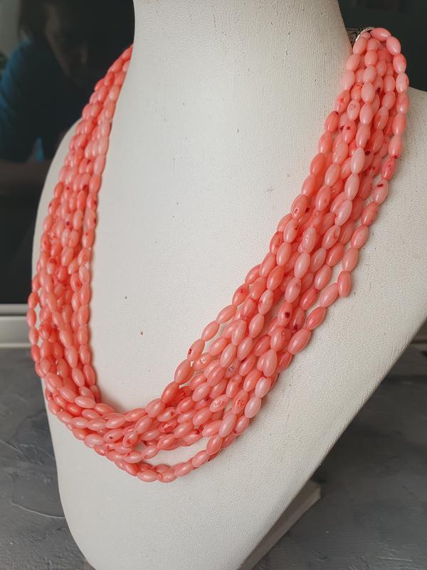 Бусы-трансформер "КОРАЛЛ лососевого цвета" Бусы ручной работы. Бусы из 10 нитей натурального коралла формы "рис". Носить можно в разных вариантах. Верхняя часть бус с бусинками 6 мм, отстегивается и можно носить отдельно. Длина 45 см Нижняя часть состоит из 10 ниточек, которые можно перекручивать. Замочки на бусах - серебро. Очень необычный и качественный замочек. Длина 48 см Общая длина бус ― 95 см.